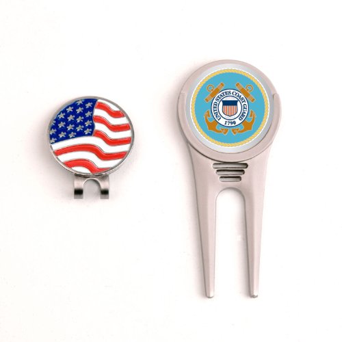 Never search for your divot tool again. Compact repair tool with easy-access Ball Marker channel fits securely onto American Flag design Cap Clip. Tool and clip in satin nickel finish..../ CMC Golf U.S. Coast Guard Magnetic Cap Tool / cigar cutter